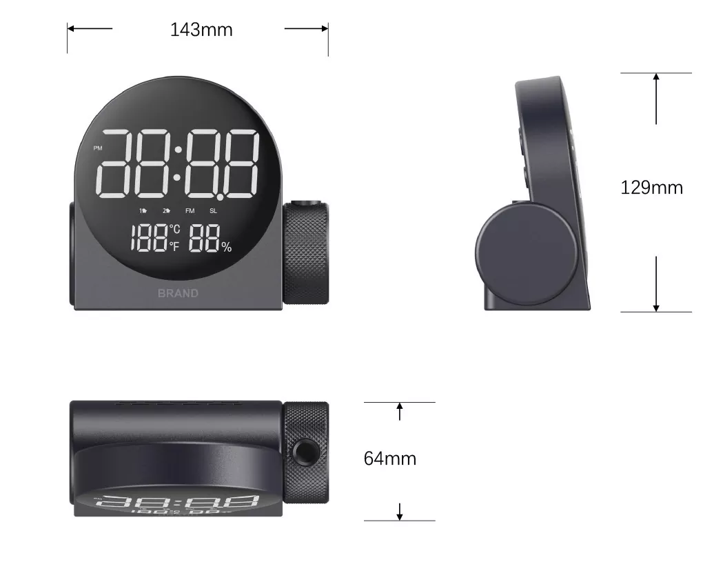 SYNST(중국)는 고품질 라이프스타일을 추구하는 사용자를 위한 디지털 알람시계를 만들었습니다. 기능성과 세련된 디자인이 결합된 일상생활 필수품입니다. 측면 프로젝션 손잡이의 위치 디자인은 독특하여 알람 시계 전면의 공간을 차지하지 않으며 사용자가 조작하기 편리합니다. 프로젝션 기능은 내장된 마이크로 프로젝션 장비를 통해 구현됩니다. 사용 중에 사용자는 이 손잡이를 돌려 투사 위치를 쉽게 조정할 수 있습니다. 어두운 환경에서는 투사된 빛이 가이드 역할을 하여 사용자가 알람 시계의 다른 버튼을 찾느라 애쓰지 않아도 됩니다. 이 디자인은 사용자에게 새로운 경험을 선사합니다. 전통적인 프로젝션과 비교하여 손잡이 프로젝션은 더 직관적이고 패셔너블하며 과학 기술 감각과 제품에 대한 관심을 높입니다. 시간 투영은 고휘도 LED 광원을 사용하여 어두운 환경에서도 시간을 선명하게 표시합니다. 투영의 크기와 선명도는 사용자의 필요에 따라 조정될 수 있으며, 투영의 각도는 사용자가 다른 위치에서 시간을 볼 수 있도록 조정될 수 있습니다. 이 제품은 투사 기능을 사용하지 않을 때 배터리 수명을 연장하거나 에너지 소비를 줄이기 위해 투사 장치를 자동으로 끕니다.